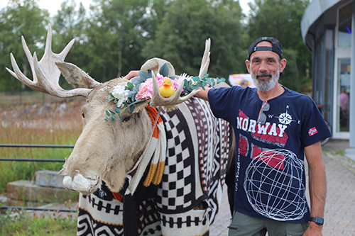 Gleich ganz bald nach dem aufstehen und abfahren, sind wir mit der ersten Fähre über den Polarkreis gefahren. Also „hinein“ gefahren. Oder schreibt man da „durchgefahren“? Evtl. „überfahren“? Ich glaub man könnte auch „hineingeschifft“ schreiben. „Hineingerudert“ klingt wohl gut, wäre aber etwas übertrieben. Wobei das schon so ähnlich wie rudern war. Jeder Passagier auf dem Fährdampfer zückte das Handy oder den Fotoapparat und hob das Teil dann in die Höhe, dann wieder nach unten, manchmal auch nach vorne oder zurück - ganz Nahe an den Zinken bzw. an die Augen… das hatte wirklich was von rudern ;-)…